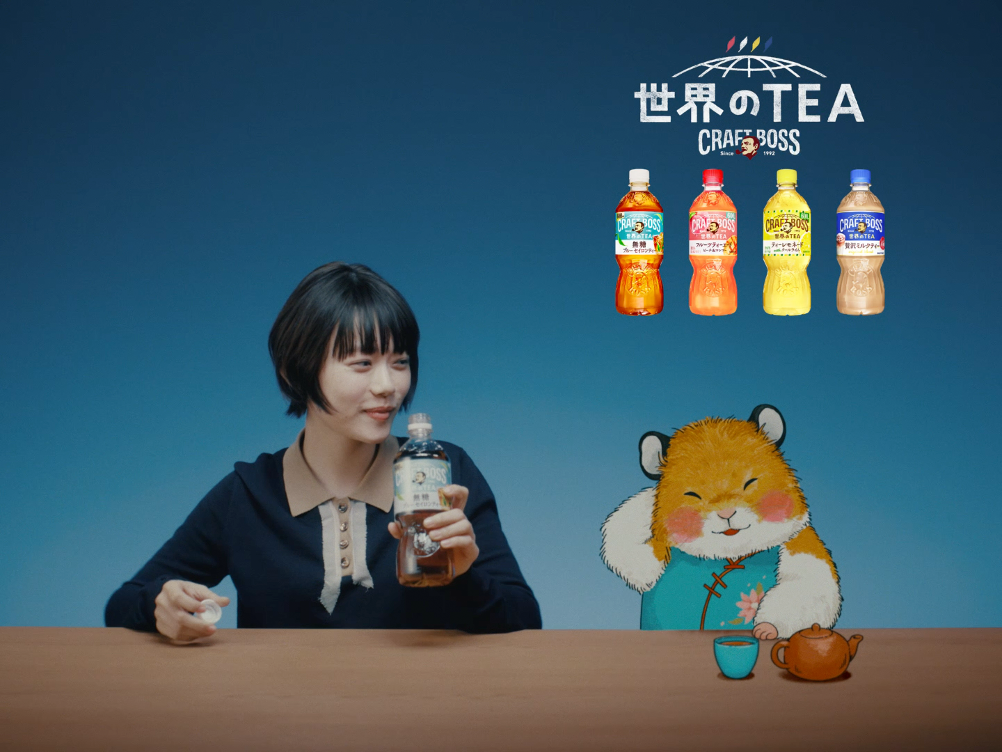 SUNTORY クラフトボス 世界のTEA TVCM杉咲ハム&ブルー セイロンティー無糖