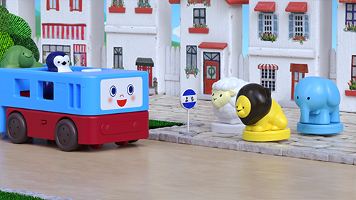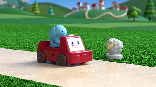車のブルーン を3DCGでコマ撮りっぽく仕上げました。